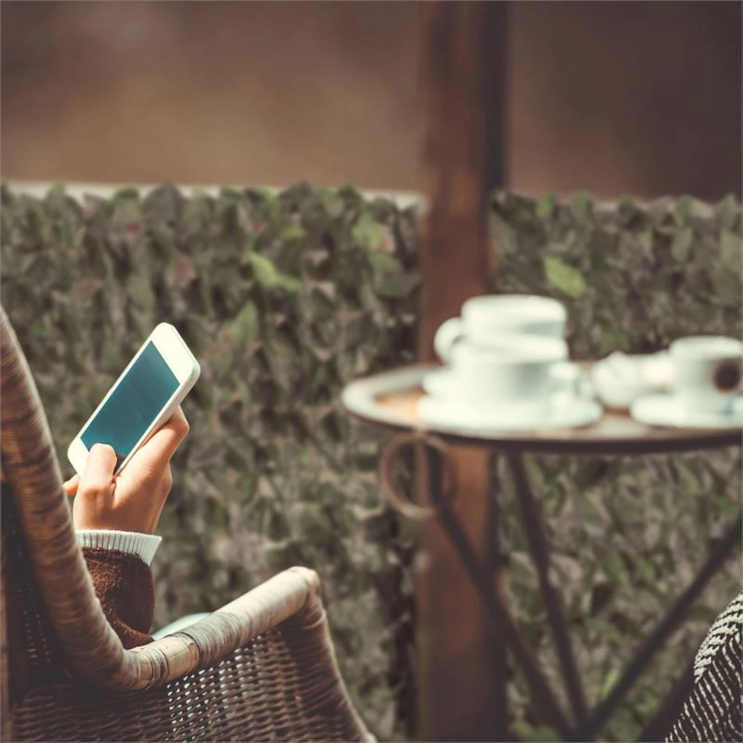 Schnell und unkompliziert wird der 3 m lange und 1,5 m hohe Sichtschutz einfach an den zu verdeckenden Geländern, Brüstungen oder Zäunen entlang ausgerollt und mit Flexbindern (im Lieferumfang enthalten) sicher befestigt. Ein dichtes, grünes Kleid aus rund 2700 Blättern versperrt neugierigen Nachbarn und Passanten den Blick und ziert gleichzeitig den Ruheort. Zusätzlich dienen die Blätter als Windfang und dämpfen Straßenlärm, was für zusätzliche Entspannung sorgt.