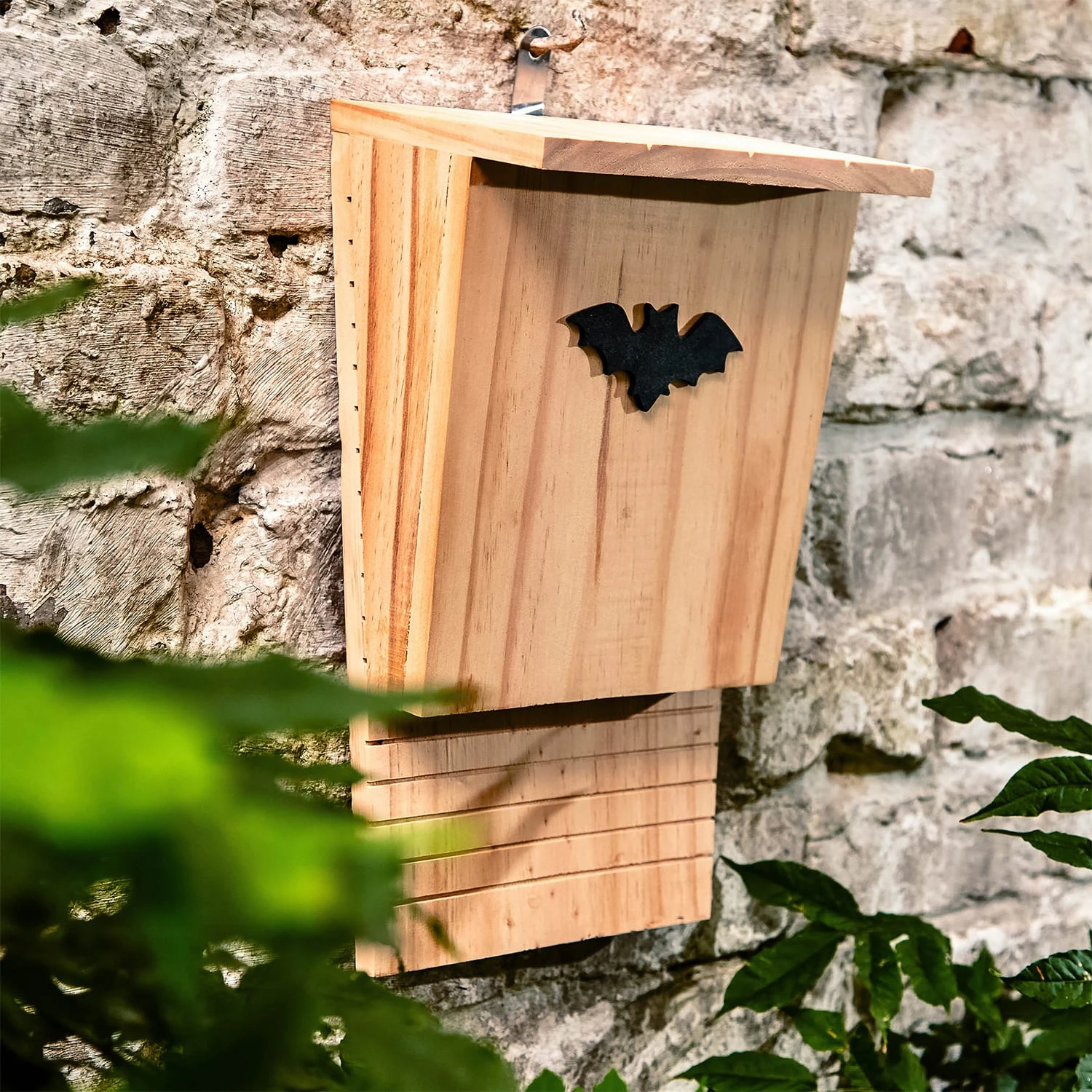 Welcome to the Bat Cave! Mit dem blumfeldt Fledermauskasten bietest du flatternden Gartenhelden einen perfekten Unterschlupf und Ruheplatz. Hier können sie sich tagsüber einfach mal hängen lassen und ausruhen, um dann als Schatten die Nacht zu durchflattern – und dabei auf ganz natürliche Weise Schnaken, Mücken, Fliegen und anderes lästiges Krabbelgetier zu verspeisen. Natürlich eignet sich das Fledermaushotel auch zum Nisten und als Überwinterungsmöglichkeit.