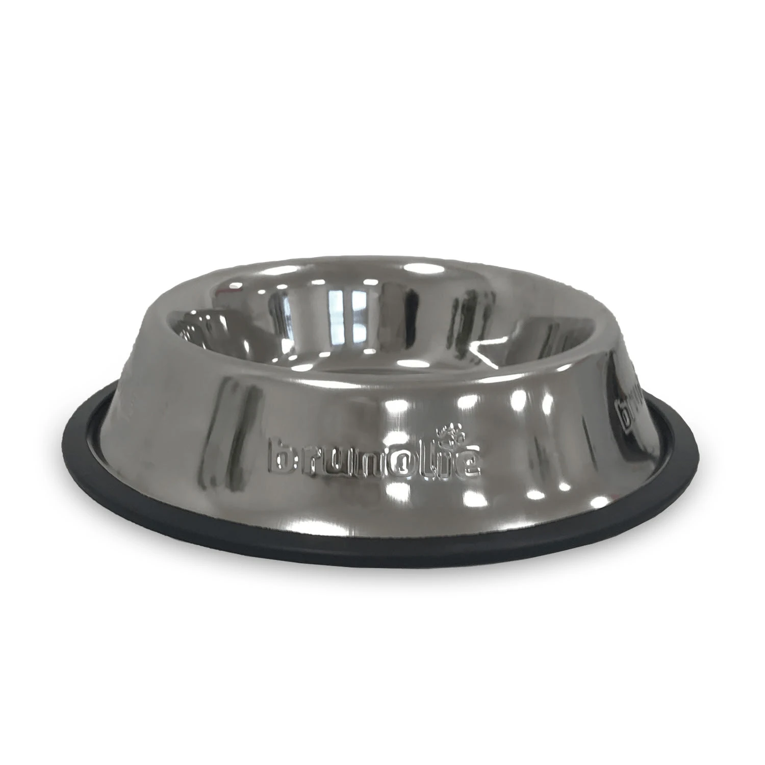 Hier futtert oder trinkt das Auge mit! Mit dem hochwertigen Brunolie Hundenapf erhältst du nicht nur ein besonders komfortables Hundezubehör, sondern auch ein schickes Accessoire für zuhause. Darüber freut sich nicht nur dein vierbeiniger bester Freund, denn das Befüllen des Napfes ist sehr komfortabel. Die seitlichen Griffe sind mit einem Gummi umrandet, sodass der Napf sicher in der Hand liegt. Der glänzende Edelstahl in Kombination mit dem schwarzen Gummi verleiht dem Fressnapf eine sehr schicke Optik. Ein kleiner, zusätzlicher Hingucker sind dabei die plastischen Schriftzüge am Außenrand. In der Mitte der Schale ist außerdem ein modernes Logo aufgedruckt.