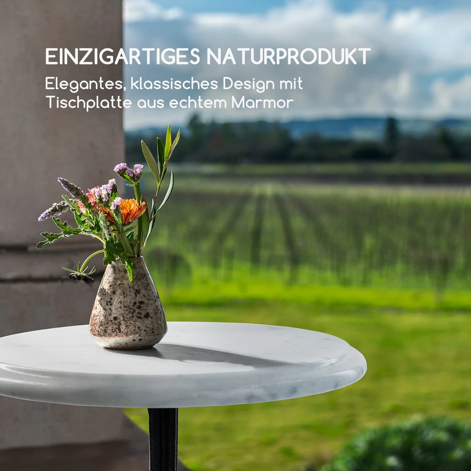 Luxuriöser Genuss mit Jugendstil-Atmosphäre – das verspricht der Blumfeldt Patras-XS Gartentisch und zieht dabei alle Register: Die 30 cm durchmessende Tischplatte ist aus sauber poliertem, echten Marmor, sodass jeder Tisch ein Unikat ist. Maserung und Färbung des Gesteins bringen immer wieder einen ganz eigenen Charakter hervor und verleihen jedem Umfeld neuen Glanz. Der wird durch den stabilen gusseisernen Standfuß mit floralen Verzierungen zusätzlich verstärkt. Egal ob für das Frühstück auf dem Balkon, zum geselligen Kaffee auf der Terrasse oder das romantische Candle Light Dinner unterm Sternenhimmel: der Blumfeldt Patras-XS Marmortisch bietet immer das richtige Ambiente.