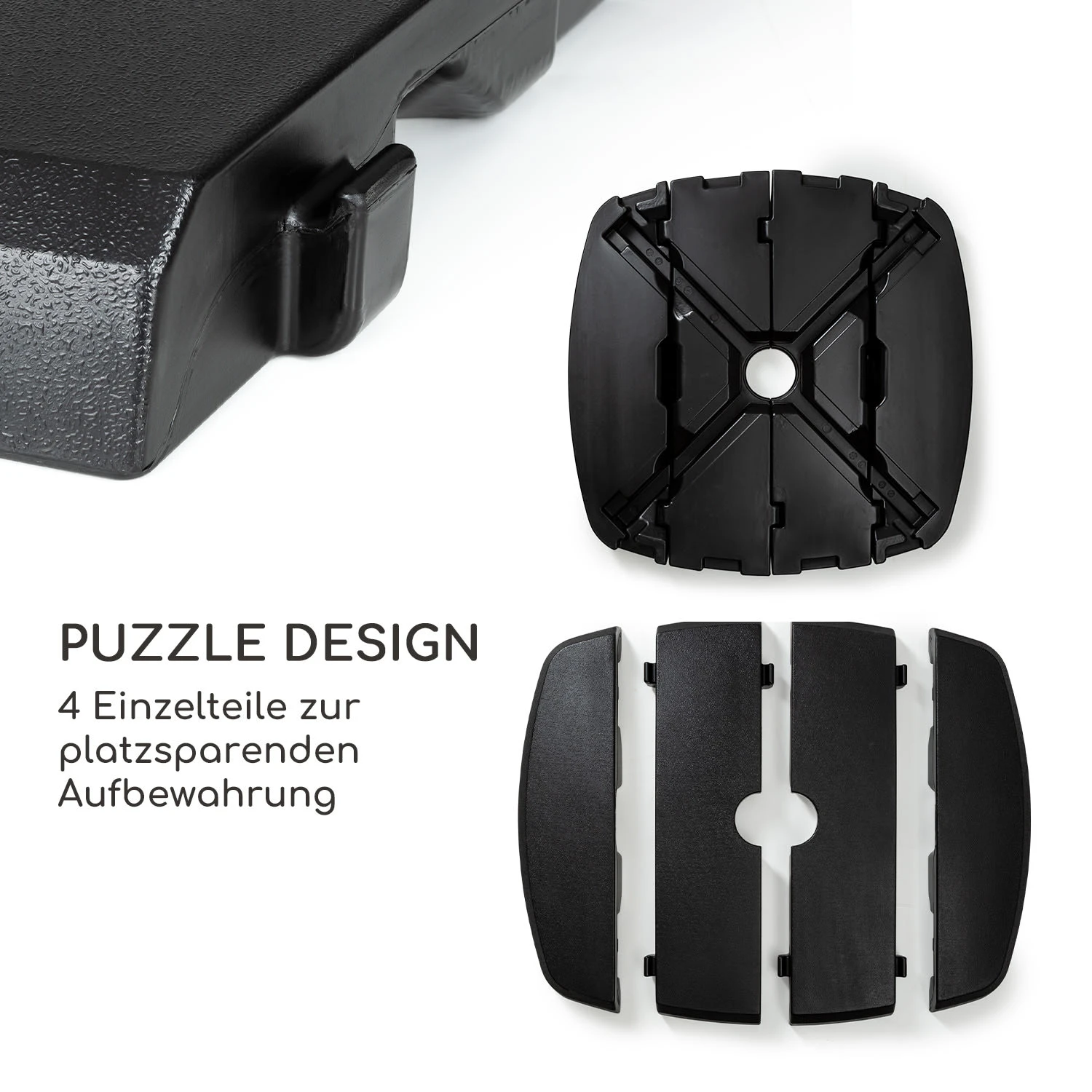 Neben der zuverlässigen Funktion als Beschwerungselement überzeugt der befüllbare Saint-Tropez Schirmfuß auch in Optik und Komfort. Er passt sich geschickt an das Bodenkreuz deines Schirmständers an, verdeckt dieses und wird so zum modernen Sockel. Viergliedrig setzt sich dieser aus zusammengesteckten Leergewichten zusammen. Praktisch dabei sind auch die seitlichen Tragegriffe an jedem Gewicht.